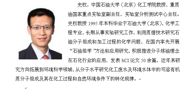 报告题目:基于质谱技术的石油分子组成分析新方法与新认识