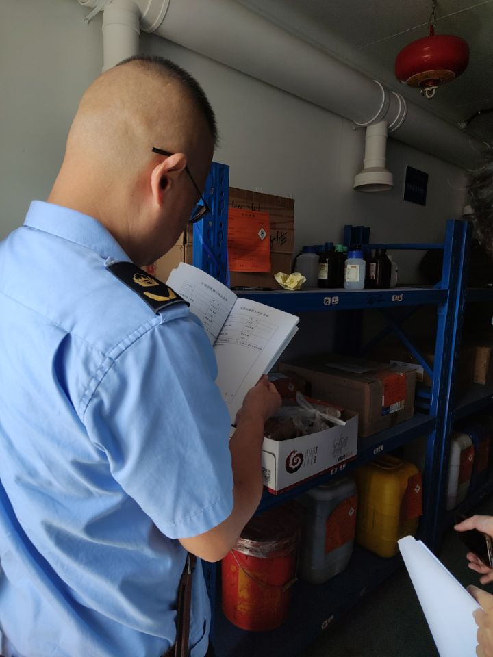9月26日上午,蔡甸区环保部门检查工作组莅临公司开展实验室危险化学品安全检查工作。武汉校区安全与后勤保障处处长邓平,资环公司实验室相关人员参加检查活动。检查查看了危化品存储间、废物处置间。