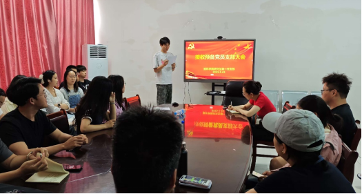 首先是接收预备党员,由发展对象赵娅宣读《入党志愿书》,并向大会汇报对党的认识、入党动机、个人情况以及需要向党组织说明的问题。发展对象入党介绍人对发展对象的情况加以说明,并对其能否入党表明意见。经支部一致讨论,同意接收赵娅发展对象为中共预备党员。