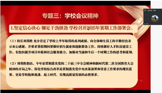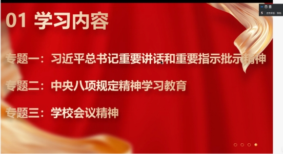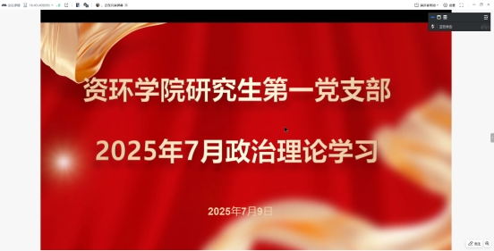 (通讯员 孙可志)为进一步提升党员的思想觉悟与理论水平,坚定党员信念、增强党性修养,2025年7月9日,tyc122ccVIP研究生党支部在腾讯会议平台举行了以“强化理论武装,深化党性修养,推动深入贯彻中央八项规定精神学习教育”为主题的支部主题党日活动。支部全体党员参加,党支部书记严丽萍主持会议。