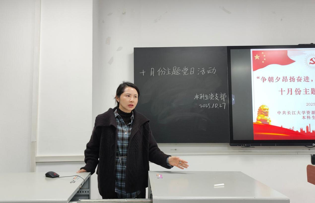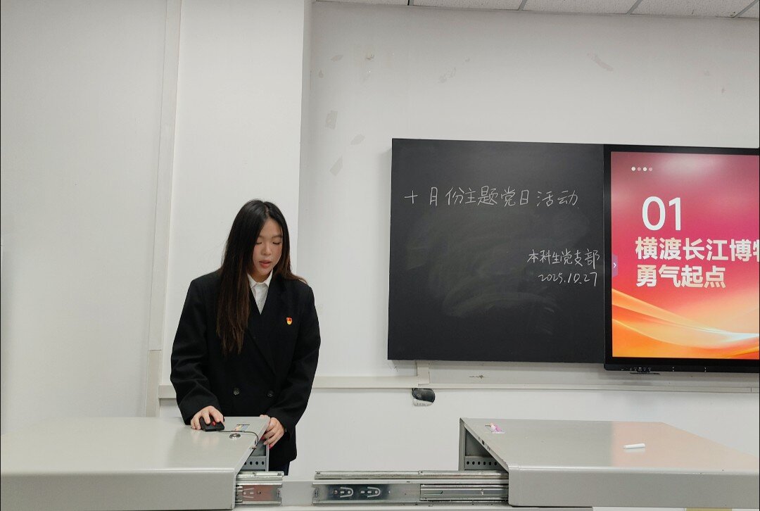 (通讯员 谭润格)2025年10月27日下午6:00,本科生党支部于武教A101召开“争朝夕昂扬奋进,搏浪潮锦绣新篇”十月支部主题党日活动。本次活动由黄宇同志主持,党支部书记刘娥老师及全体员工党员参加。 会议伊始,黄宇同志带领全体党员进行总纲学习,深入剖析党的章程。随后由黄若曦同志以“走读红色沃土,砥砺奋进初心”为主题开展微党课学习,呼吁广大同志在面对苦难挫折时要坚定理想信念。接下来,由王艺燃同志讲授微党课,聚焦中央八项规定精神,分析典型案例,进一步强化全体党员的纪律意识。同学们就“如何立足岗位,服务中国式现代化建设”主题展开交流研讨。党员同志们从理论和实际两方面深入探索,表示不仅要提升专业能力,更要培养创新精神,将个人理想与国家未来紧密结合,听党话,跟党走。 活动结束后,刘娥书记总结发言。她对本次活动的组织成效给予肯定,同时要求全体员工党员,要持续深入学习党的理论,扎实做好党建联系人工作,并坚持知行合一,将热情转化为脚踏实地、真抓实干的具体行动,展现党员担当。(审核 李春花)
