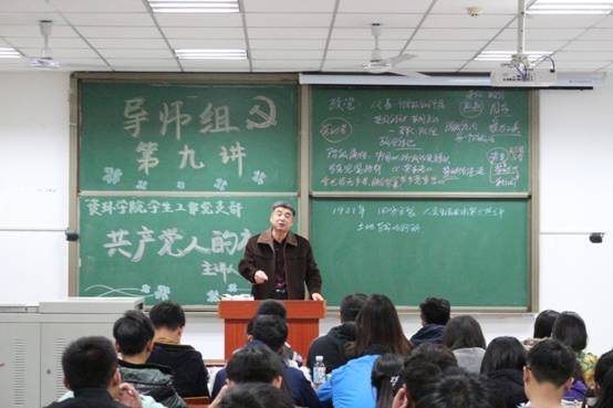 (通讯员 范达福 图/文)为了更好地服务广大同学、开拓员工视野、提高综合素质,2017-2018年度,资环公司员工工作党支部推出“导师组”系列讲座。导师组系系列讲座第九讲与11月15日晚在武教A-102开讲,邀请资环公司党委书记朱思源书记主讲“共产党人的初心”,讲座由员工事务办公室刘娥老师主持,资环公司本科80余名员工按时参加。 讲座伊始,朱思源书记介绍了中国共产党对党员的各项规定和入党条件,阐述了政党的概念,从党所属阶级入手,结合中国共产党成立的特殊历史节点,详细介绍了党的性质和党成立的初衷,即代表中国工人阶级,以实现中国梦