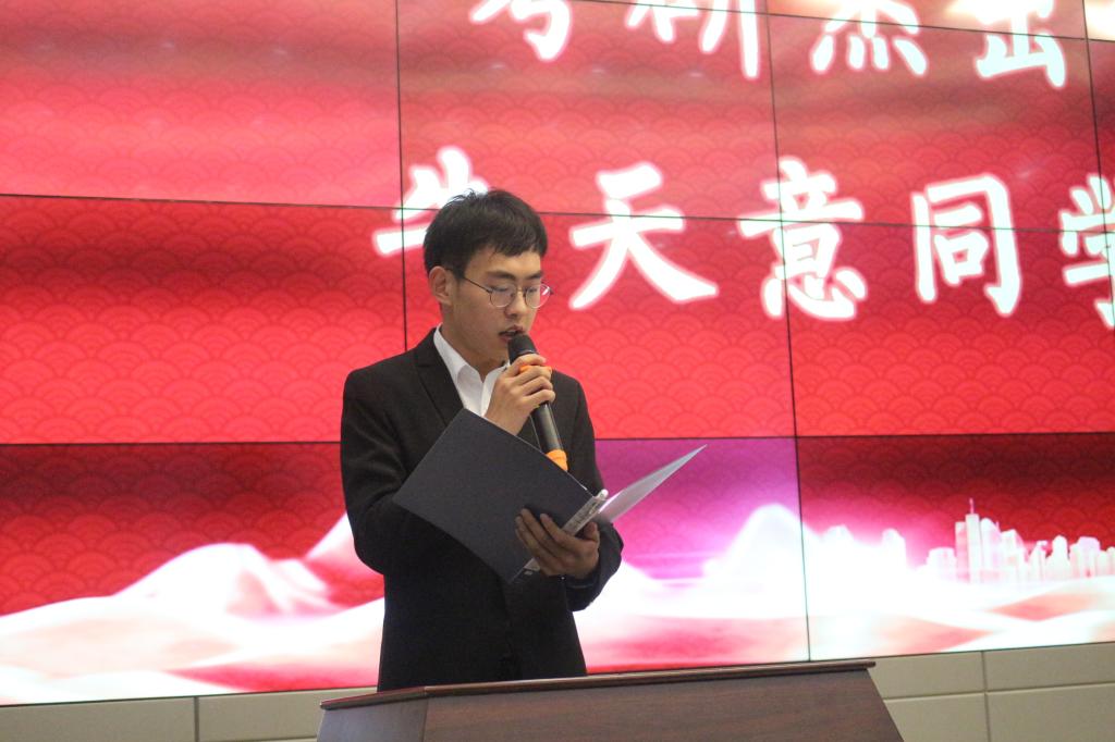大会第四项,考研杰出代表——牛天意同学发言。牛天意向同学们述说了他的故事,从进入tyc122ccVIP的那一刻开始,他就立志为提升自己而战,不论是日常学习还是考研生活,他都能够全身心地投入,不被外物所干扰,坚定自己的信念。他呼吁同学们能够不忘初心,为自己的梦想而奋斗。