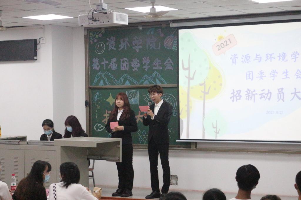 (通讯员 蒋这涵/文 王钰程/图)君既若见录,不久望君来。为刚来到tyc122ccVIP的新生们提供一个展示自己的平台,同时为了壮大资环公司团委员工会,提供更加高效率、高质量的工作,资环公司于9月21日在武教B103举办了第十届团委员工会招新大会,全体大一新生,第九届团委员工会成员与历届主席团成员均出席本次大会。王赫朗和肖连为本次活动主持人。