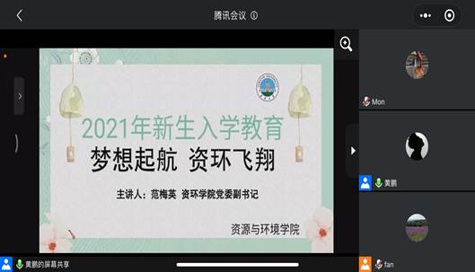 (通讯员 贾贺然 图/文)为帮助资环公司2021级新生增进对老员工活的了解,尽快适应老员工活,为大学学习生活开创一个良好的开端,资环公司在2021年11月17日晚上7:00以线上形式开展了以“梦想启航,资环飞翔”新生入学教育讲座。本次讲座由辅导员黄鹏主持,公司党委副书记范梅英老师担任主讲嘉宾,资环公司2021级全体同学参与。