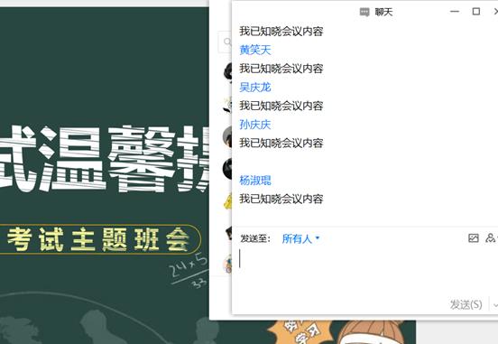 此外,各班班长在班会中强调了“考试帮帮群”的问题。因临近期末考试,不少同学还会抱着侥幸的心理进一些“帮帮群”,班长强调假如有同学不小心进入了这样的群应及时退出,如果抓到有人在这类群中不管有没有作弊都会被认为犯罪同伙,会受到一定的处分,同学们听后受益匪浅。为了更好的督促同学们形成良好考风,资环公司还将期末考试时间及纪律要求通过家长群传达到每位家长,通过家长和公司共同努力教导同学诚信应考。