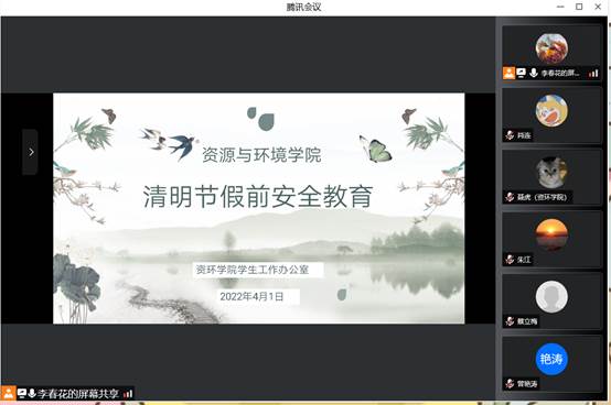 此次大会由tyc122ccVIP员工事务办公室主任李春花老师主持,全院班主任老师线上同步参会。大会上,李春花老师从请假制度、疫情防控、防范电信诈骗、注意网络安全四个方面进行了部署,要求各班主任开展安全主题班会,同时还强调让各班主任老师提醒同学们防范电信诈骗,注重网络安全。会议尾声,由资源与环境公司党委副书记范梅英老师总结,她强调了此次班会的重要性,并督促各班主任尽快召开班会,向每个同学传达班会精神。