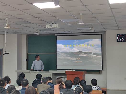 在大会第三项中,公司各研究团队的导师代表分别上台进行了导师介绍,地球化学系的吴越老师和陈果老师分别介绍了岩矿地球化学和有机地球化学的导师团队,优秀的团队力量和先进的实验设备都让大家叹为观止。而水环系的贺美老师,陈燕飞老师,陈彦美老师对于水环境,地表水以及地下水各方面的详细介绍,再次获得了现场的掌声雷动,尤其是陈燕飞老师慷慨激昂的一句“选择水文水资源专业就是选择美好的人生!”,更是引起了同学们的热烈反响。