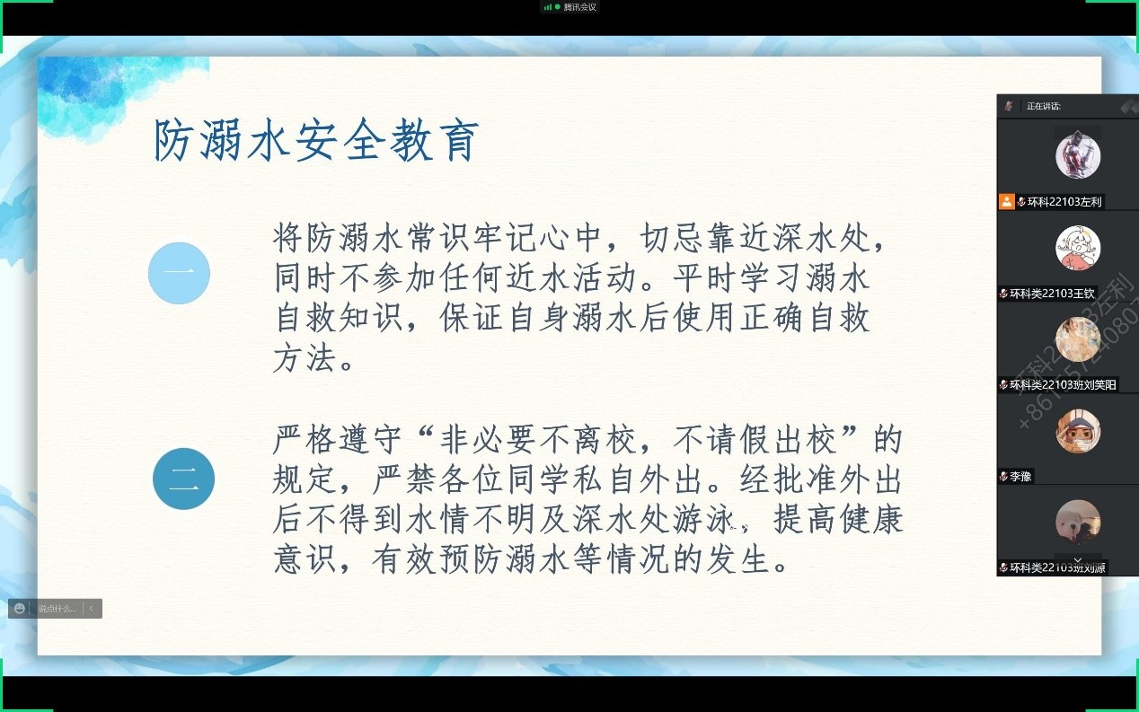 (通讯员 左利 图/文)暑假来临,为提高同学的防溺水安全意识以及疫情防控意识,保障同学们假期安全,认真贯彻落实公司安全教育,tyc122ccVIP组织全院各班安全委员在自己班级内召开以“防溺水安全知识教育、疫情防控安全教育”为主题的安全班会。