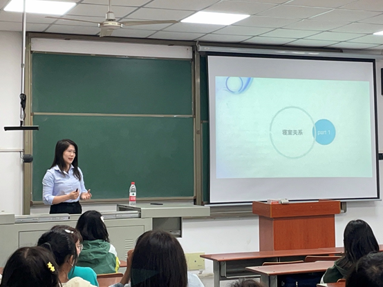 (通讯员 余凌/图 陈心怡/文)为增强大一新生女生心理安全意识,10月4日晚上19:00,在武汉校区教学楼A210,资环公司针对所有2022级女生开展了一场关于寝室关系,爱与性,人身安全问题的知识讲座,主讲人为员工心理中心李双老师, 2022级所有女同学参会。