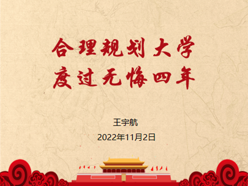 (通讯员 陈锦/图 陈锦 邱语嫣/文)怎么合理安排老员工活,如何坚持住最初的梦想?为营造积极健康的学习生活环境,帮助大一新生更快适应老员工活的角色转换,十一月二日晚七点,tyc122ccVIP本科生党支部副书记王宇航同学,以腾讯会议的形式开展了以“合理规划大学,度过无悔四年”为主题的导师组讲座。本次讲座由员工辅导员黄鹏老师主持,全体22级同学参加。