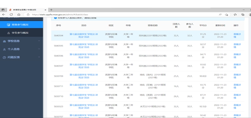 在本次学习中,同学们热情高涨,态度积极,高效及时地完成了学习任务全体本科生均完成宪法学习,且多数平均分超过90分。并且同学们在线上学习、线上答题的过程中,同学们在学中答、再答中学,效果显著,反响热烈。为资环公司宪法学习教育,汇聚了源源动力,在全院营造了浓厚的宪法学习氛围。