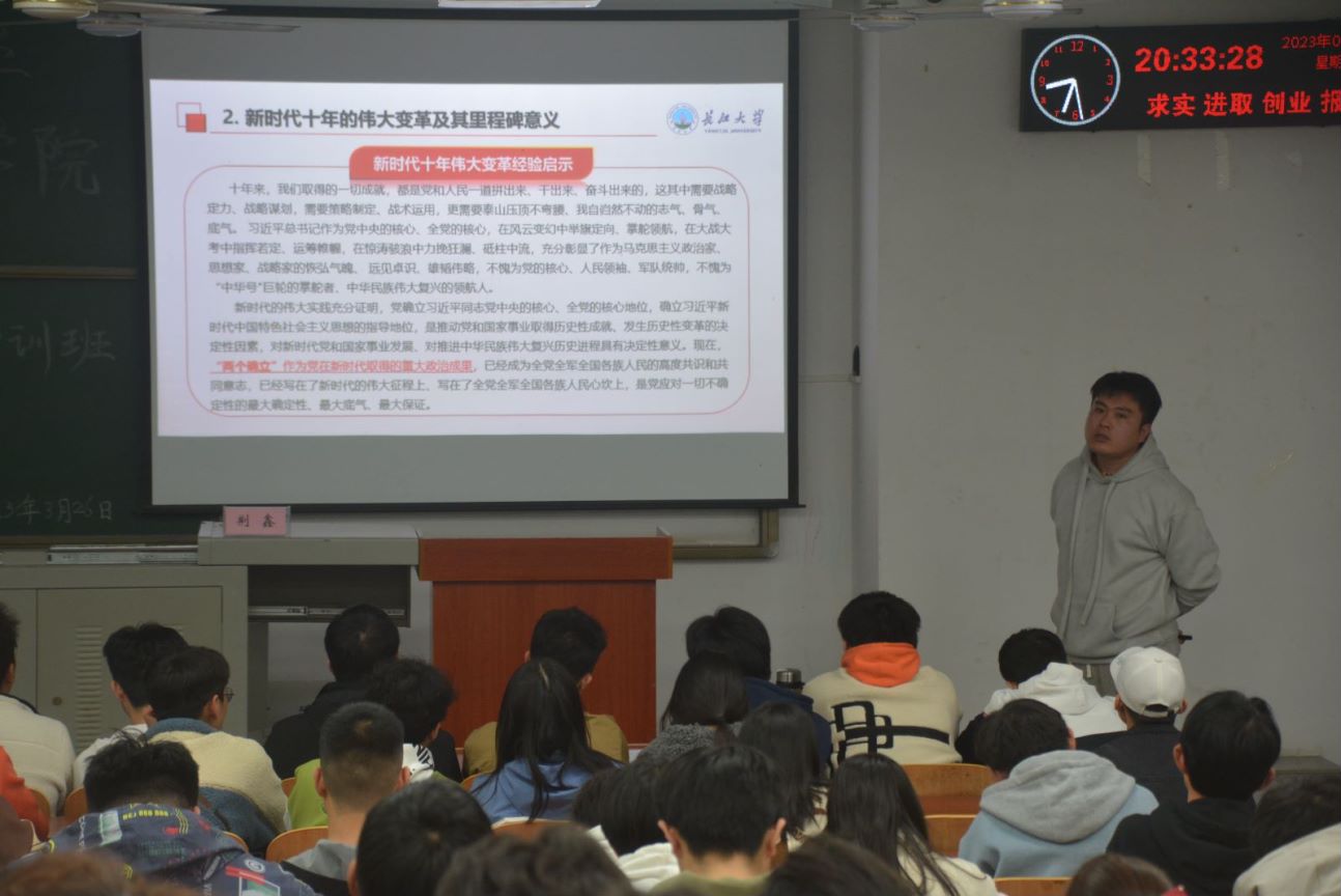 随后荆鑫老师为同学们展示了党的二十大主题和主要成果,让员工干部们深刻到认识过去五年党的工作和取得的成果。荆鑫老师在讲话中强调,员工干部是员工思想政治工作队伍的重要组成部分,是高校开展思想政治教育不可或缺的重要力量,举办员工干部初级培训班,充分体现了公司党委对员工干部队伍的高度重视,对各员工组织负责人的殷切期待。
