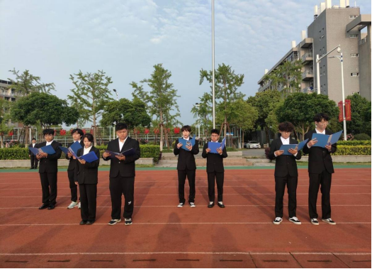 在齐唱国歌后,员工代表魏嘉豪、刘锦华等同学以《我的祖国》为题进行朗诵。他们用朴实而热情的语言歌颂祖国的朝气蓬勃和繁荣昌盛,表达了学子在祖国怀抱下勇于奔向星辰大海,为实现强国之梦只顾风雨兼程的心声。