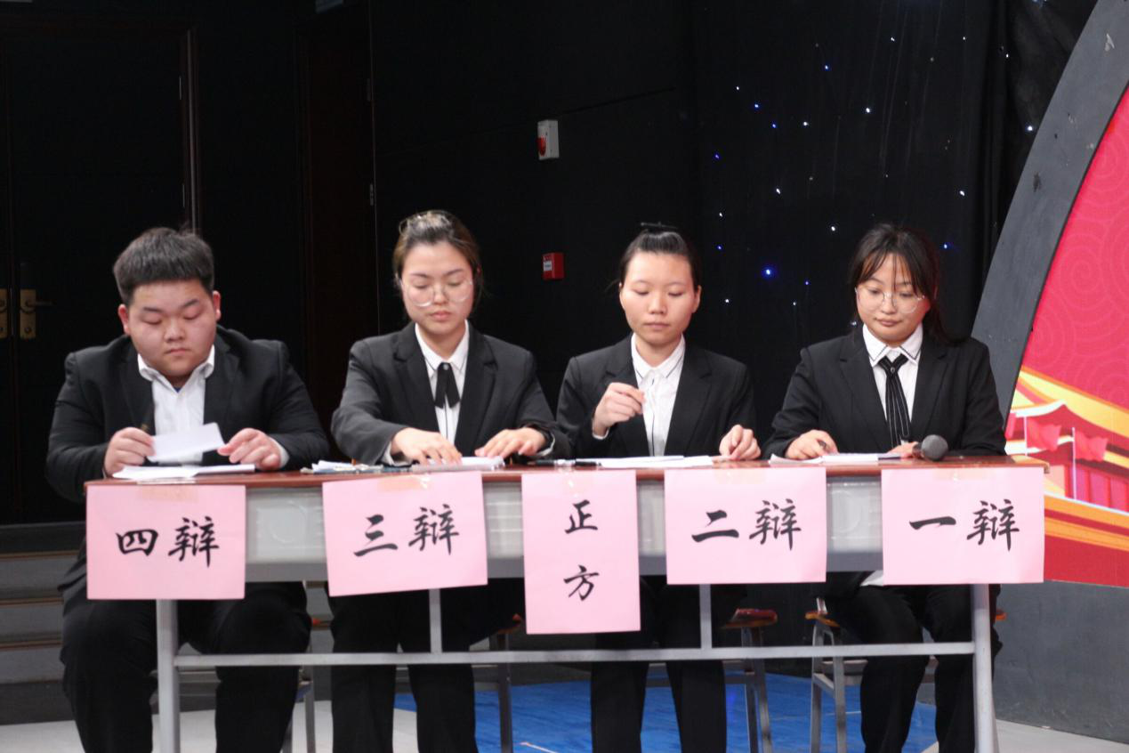 此次辩论赛决赛主题为成年人的崩溃该不该藏起来。作为正方的环境21901班与作为反方的环科类22003班对此展开了激烈的对决。比赛伊始,双方辩手便明确地提出了自己的观点,正方一辩首当其冲认为奔溃的隐藏是一种直面挫折的力量,话音刚落,反方四辩起立就对此反驳:长期的自我封闭只会使自己的负面情绪更加严重。而反方一辩抓住崩溃和成年人这两个词语,从定义的方面提出自己的观点,双方各有千秋,极具亮点。紧接着正方二辩继续对一辩的内容进行补充,隐藏奔溃能让我们周围的人少一点对我们的担忧,而反方三辩以犀利的三连问进行辩驳,不给对方丝毫喘息的机会。在后面的自由辩论环节中,比赛来到了高潮,双方辩手一问一答,字字皆是细节,句句直戳要害,清晰的逻辑思维让在场的观众不由发出阵阵赞叹。在最后的四辩陈词环节,反方四辩对整场辩论赛所有的论点与论据进行了独特的讲解,更是夺得了三位评委的一致好评,奠定了优秀本场比赛辩手的称号。最终正方四位辩手出色的发挥赢得了评委和观众们的声声喝彩,正方环境21901班以6:3的成绩夺得了此次“一站到底”辩论赛的冠军。