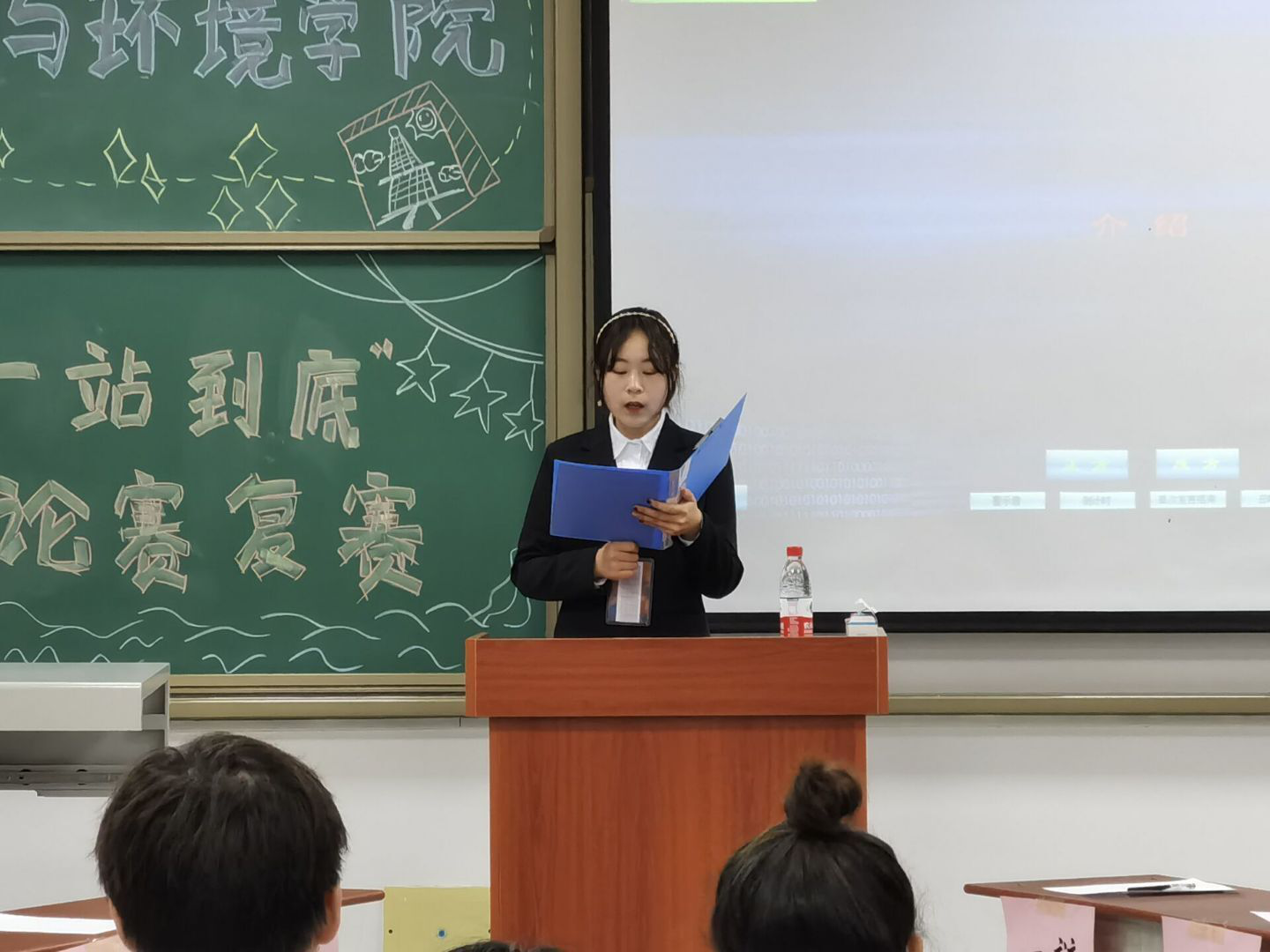 然后进行的是复活赛,三支未获胜的队伍在这场比赛中选取主题并进行5分钟的解释说明。环科类22005班给评委留下了深刻的印象,成功复活。