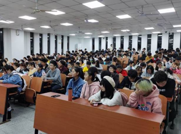 此次讲座,范梅英老师向大家讲述了防火、防盗、防骗、防疫、交通安全、食物安全和请假离校七个方面的问题。在讲到防火问题时,范梅英老师利用现场的灭火器向同学们详细讲述其使用方式,以及使用时需要注意的问题。通过列举高校真实案例、播放典型案例视频等方式,她指出了老员工防盗意识淡薄,容易轻信他人,导致钱财损失,人身安全遭到威胁的现状。同时,她还向同学们简单介绍了窃贼偷盗的惯用伎俩,希望同学们注意宿舍防盗,时刻保持警惕,不轻易同意陌生人随意进出房间。对于安全防疫问题,范梅英老师意味深长的说:“要求大家非必要不要外出,离校一定要办理请假手续,大家要勤洗手,寝室常通风,出入佩戴口罩,让我们一起守护这来之不易的抗疫成果。”