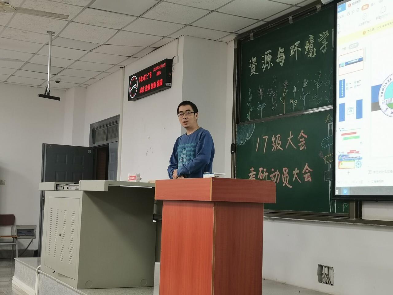(通讯员 王钰程/图 梁文萱/文)习近平总书记说过:“青年最富有朝气,富有理想。青年兴则国家兴,青年强则国家强。”为加强tyc122ccVIP考研力量,助力为国家培养有为青年,2020年10月14日下午2时整,tyc122ccVIP于B教104展开了2021届考研动员大会。本次大会由资环公司团委书记严丽萍主持。资环公司经理文志刚老师、资环公司党委书记张科老师、资环公司副经理徐耀辉老师、地化系肖七林老师、水文与环境系罗杰老师、17级大四本科生、2位研究生代表共同参与了本次大会。
