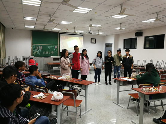 (通讯员 李雅欣 文/图)“我的故事就是这样,希望大家今天也能敞开心扉,真诚的与大家分享自己的故事。”10月15日晚七点,武教b503中,伴随着班导倪沐阳学姐真诚而略带羞涩的恋爱经历讲述,水文21701班主题班会——“爱情这件小事”正式拉开帷幕。班会上,由班导精心准备的“菜园果园动物园”、“007”、“谁是卧底”等游戏大大增强了班会的趣味性、互动性,使每一个同学都乐在其中。每轮游戏结束,更有同学们与大家分享自己对恋爱的憧憬以及曾经的恋爱经历,坦诚的交流增进了同学们对彼此的了解与友谊。班会的最后,班导梁贇学长压轴出场,讲述了自己的恋爱经历,并用一部可以代表自己恋爱心情的歌曲mv作为班会的结尾。