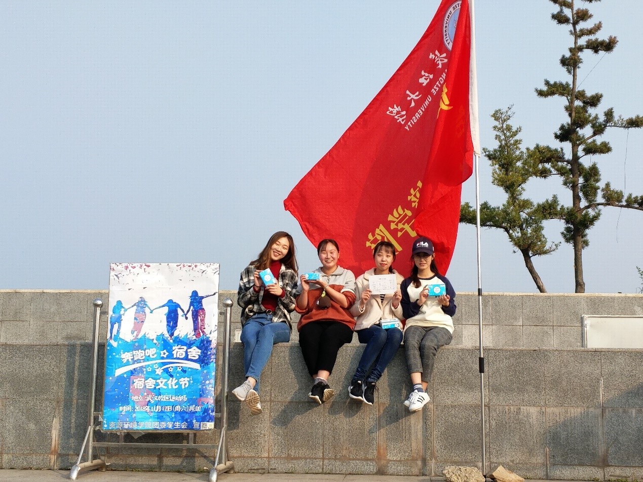 在工作上,宿舍成员都积极认真地为同学老师贡献自己的力量,都曾在班级、院级组织中担任要职。令狐苗苗同学现任班级学习委员一职;邓美玲同学曾担任资环公司团委员工会心育部部长一职,现任班级班长一职;罗雨婷同学现任资环公司团委副书记一职,也在省学联进行实习工作;宋雅坤同学曾担任资环公司团委员工会组织部副部长一职,现在活跃于各个院校级晚会中担任主持人。在院级、校级举办的一些活动中,也经常可以看到我们寝室成员的身影。
