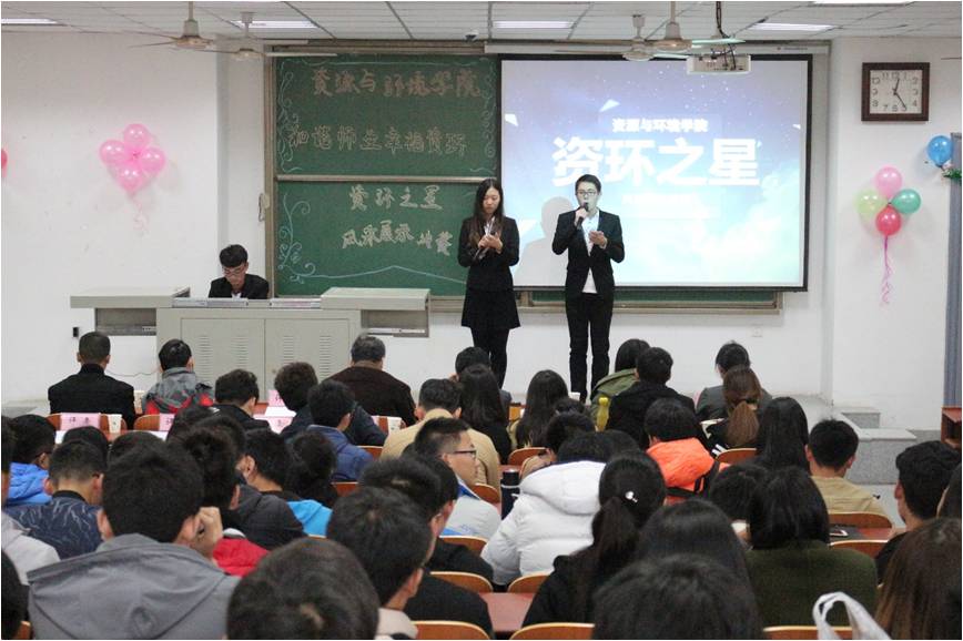 (通讯员高燚菲/文 摄)12月2日下午2时30分,tyc122ccVIP在武培B106举办了第一届资环之星评比的决赛。资源与环境公司党委书记朱思源老师、院员工事务办公室主任刘娥老师、年级辅导员李春花老师、班主任代表朱翠山老师、潘红忠老师及何大祥老师出席了本次活动。