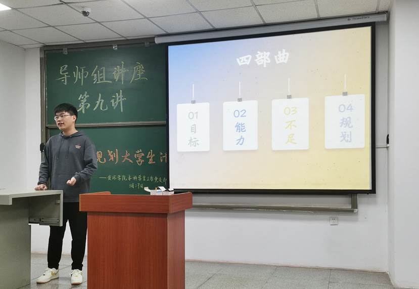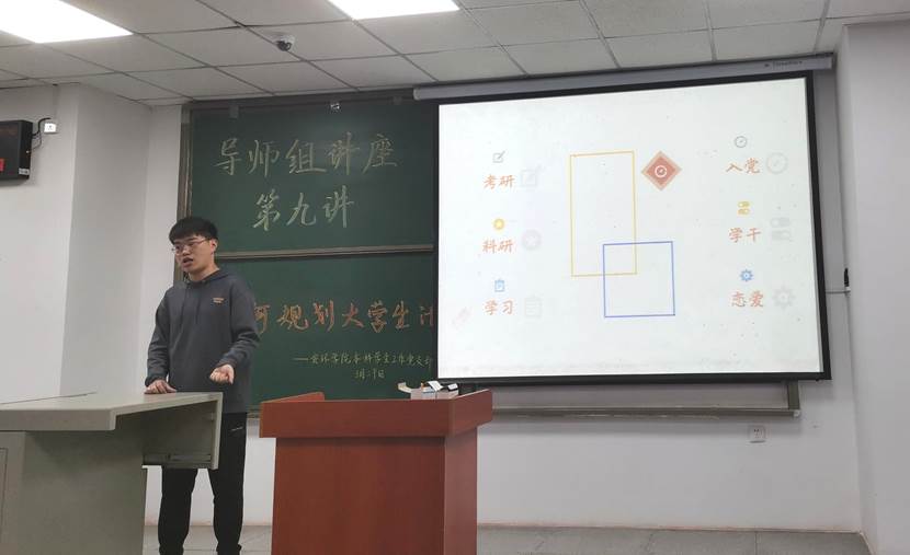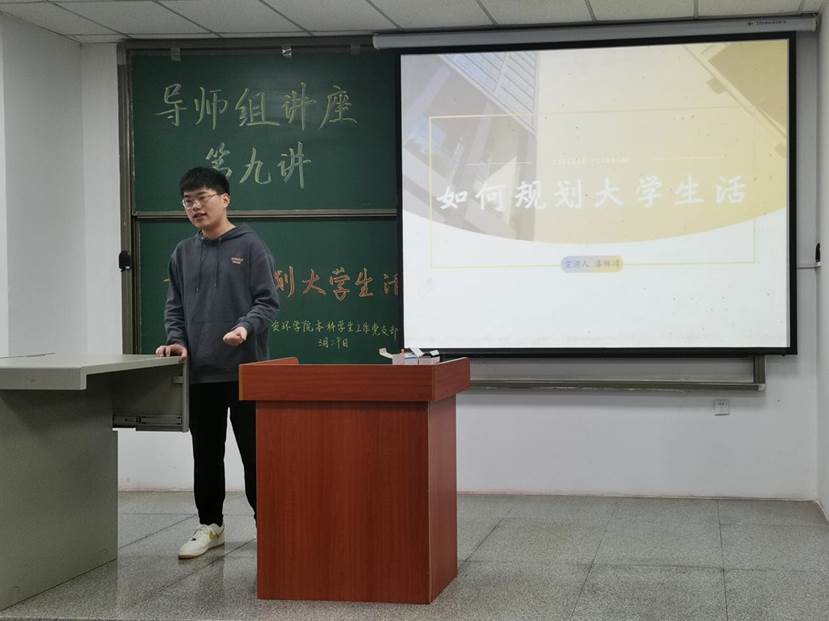 接下来,漆琳靖同学从考研、科研、入党等几个方面给大家进行了普及,他提到学习是每个方向的基础,所谓老员工,最重要的任务还是学习,不管是考研还是入党等,学习成绩都是一块敲门砖。同时在大学,大家也要学会主动出击,并把握好每一个机会,成功与否都是不错的经历。最后,他勉励大家要努力,不能想着依靠父母,要为自己期望的生活而奋斗!