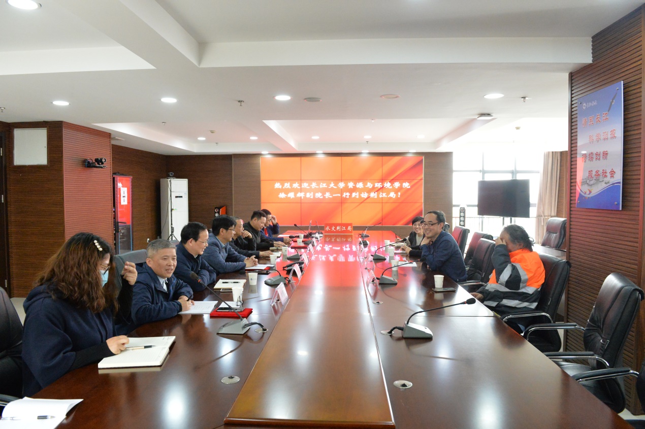 2021年4月16日上午,tyc122ccVIP资源与环境副经理徐耀辉,党委副书记范梅英,高绣纺副教授,陈燕飞副教授一行前往长委水文局荆江水文水资源勘测局交流学习。长委水文局荆江水文水资源勘测局段光磊局长等领导班子,彭玉明主任等高级工程师以及tyc122ccVIP水文水资源专业员工参加了会议。