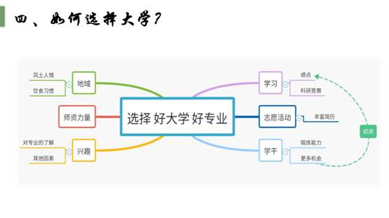 最后部分,冯思瑶向同学们分析了同学们关注度最高的问题,“如何选择大学”,她从地域、专业及团队力量三个方面分析了该如何抉择自己的大学,并依据受欢迎程度,将当下专业分成了四个梯队,并分别讲述了每个专业的就业前景等信息。紧接着她向同学们分享了自己的老员工活,并将自己高中和大学的状态进行了对比,同学们纷纷表示受益匪浅。在讲座的最后冯思瑶同学祝愿同